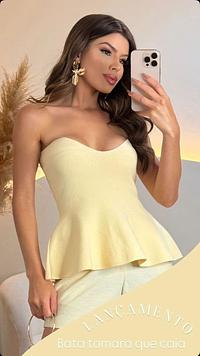 Blusa tomara que caia peplum, confeccionada em modal canelado premium, com toque super macio e modelagem estruturada que valoriza o colo e define a cintura.